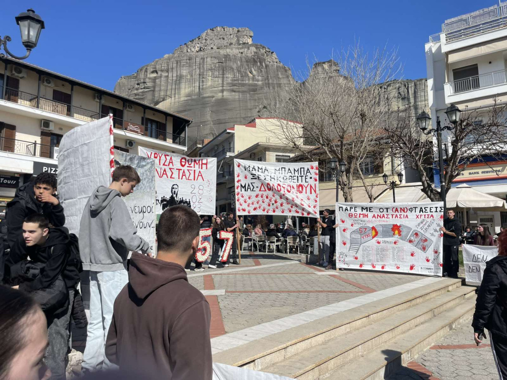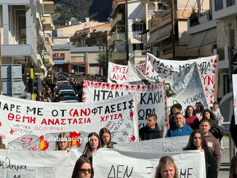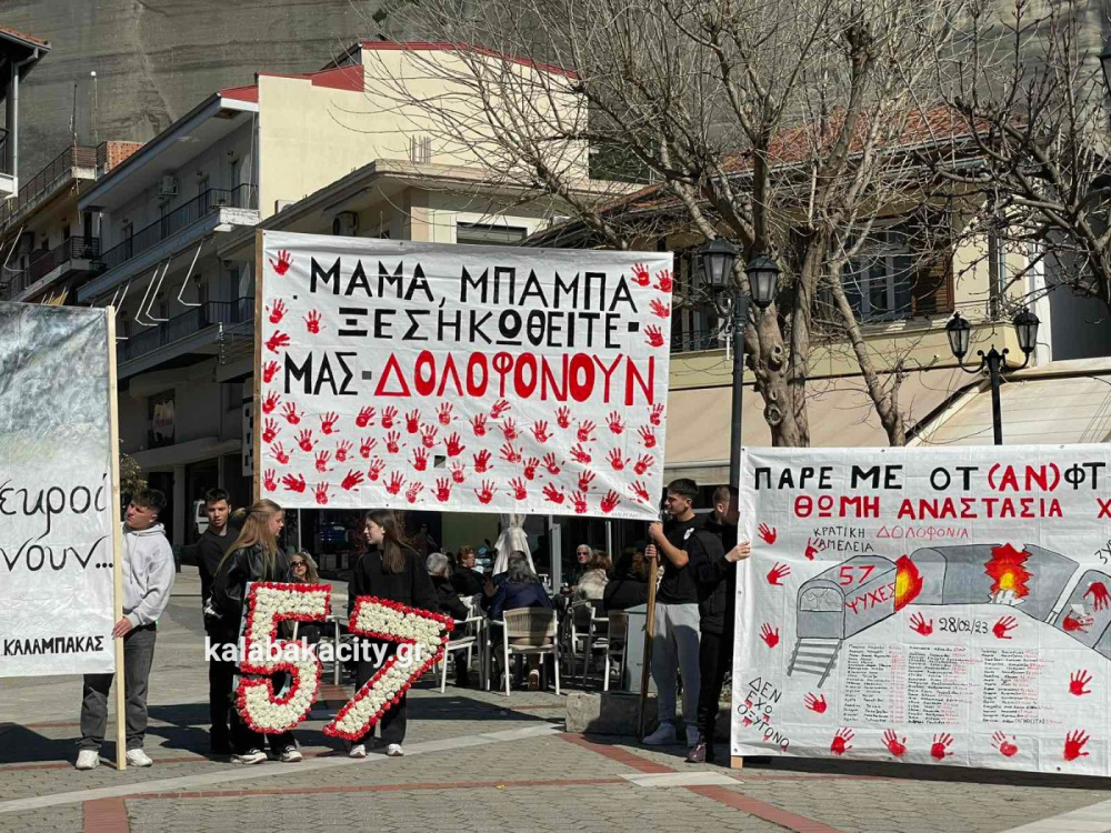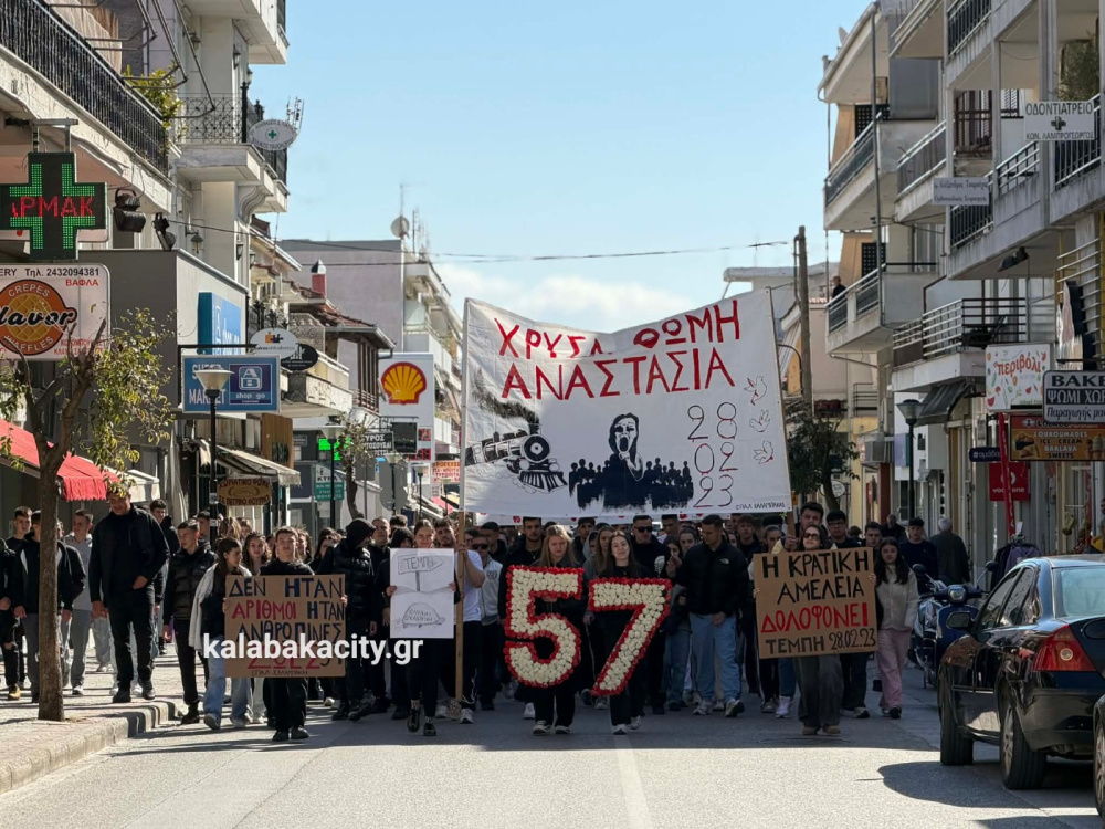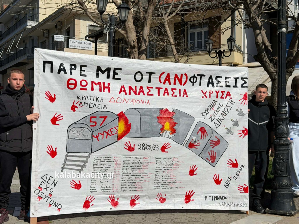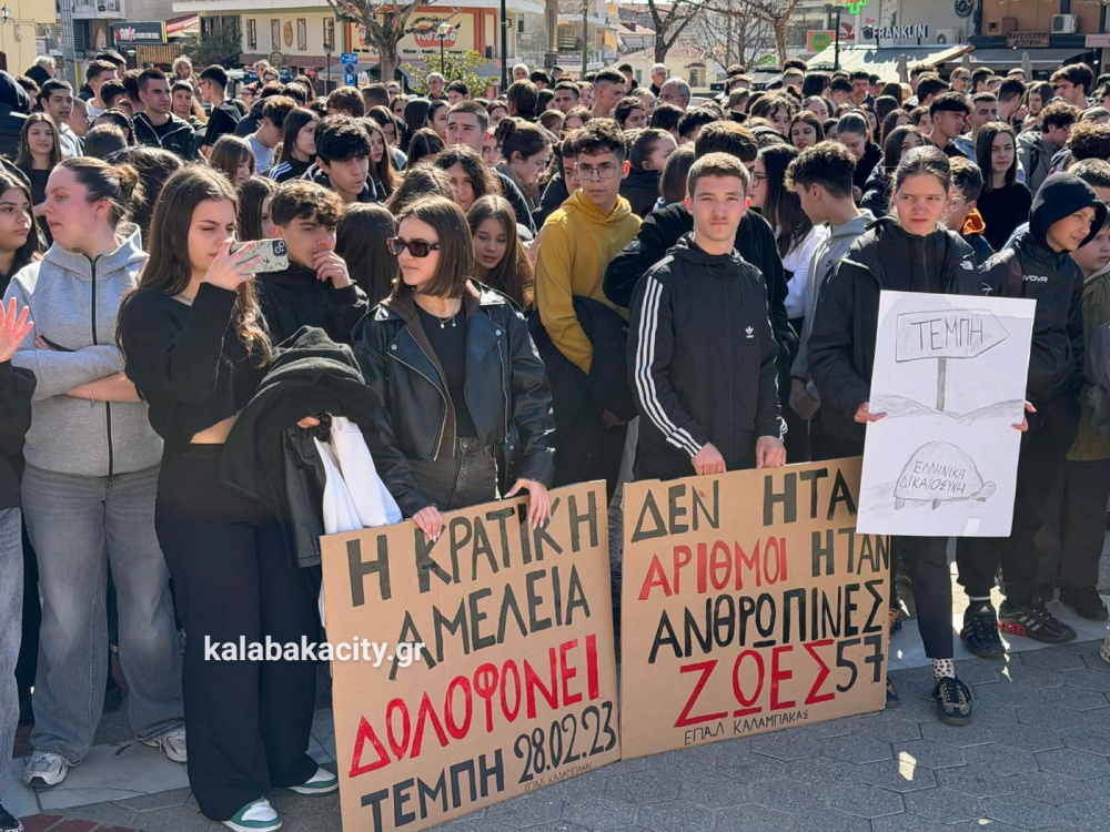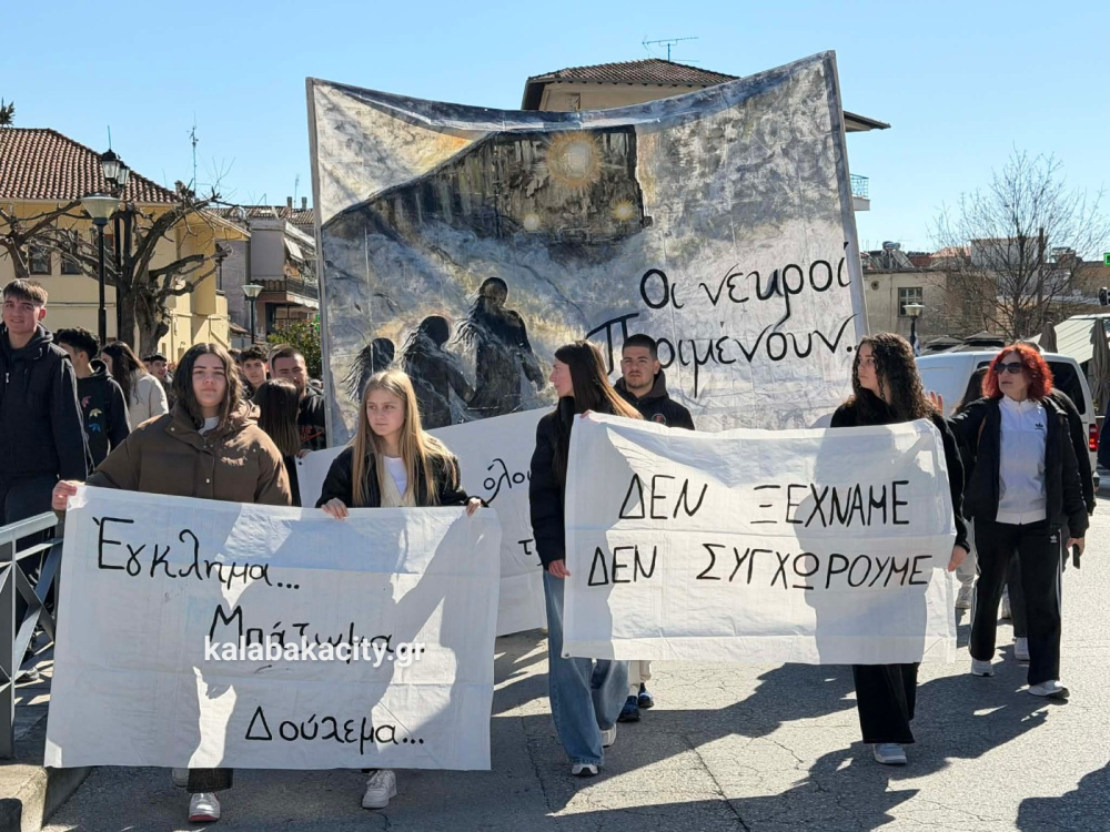 Στη συνέχεια οι μαθητές πραγματοποίησαν πορεία προς τον Σιδηροδρομικό Σταθμό Καλαμπάκας (ΟΣΕ), όπου συνέχισαν να εκφράζουν την οδύνη αλλά και την απαίτησή τους να μην ξεχαστούν τα θύματα της τραγωδίας και να αποδοθεί δικαιοσύνη. Με τη δυναμική τους παρουσία έστειλαν το μήνυμα ότι η μνήμη των ανθρώπων που χάθηκαν θα παραμείνει ζωντανή και ότι η νέα γενιά δεν θα σταματήσει να ζητά δικαιοσύνη.