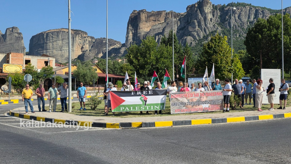 Συγκέντρωση κατά της γενοκτονίας στην Παλαιστίνης πραγματοποιήθηκε στην είσοδο της Καλαμπάκας με αφορμή την έλευση τουριστών – στρατιωτών του IDF στα Μετέωρα.