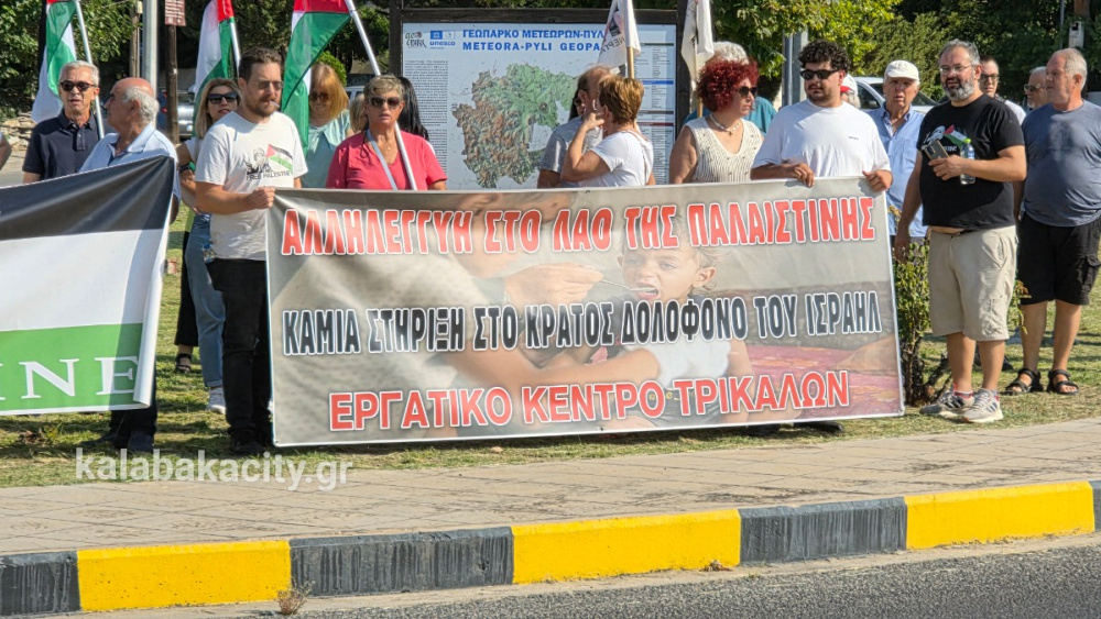 Το Εργατικό Κέντρο Τρικάλων και σωματεία πραγματοποίησαν την κινητοποίηση αυτή προς ένδειξη αλληλεγγύης στον παλαιστινιακό λαό μέσα σε ειρηνικό κλίμα.