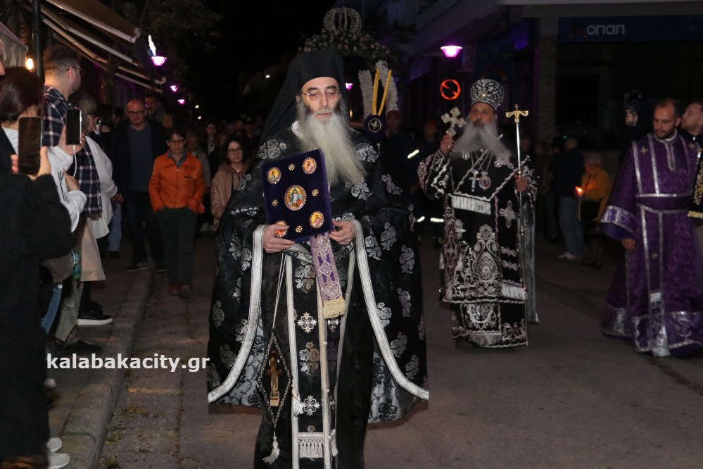 Με κατάνυξη και ιδιαίτερη λαμπρότητα πραγματοποιήθηκε το βράδυ της Μεγάλης Παρασκευής η περιφορά των Επιταφίων των ενοριών της Καλαμπάκας.