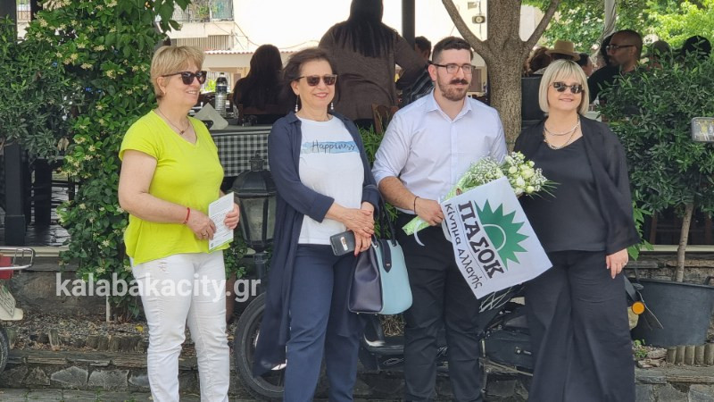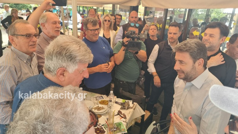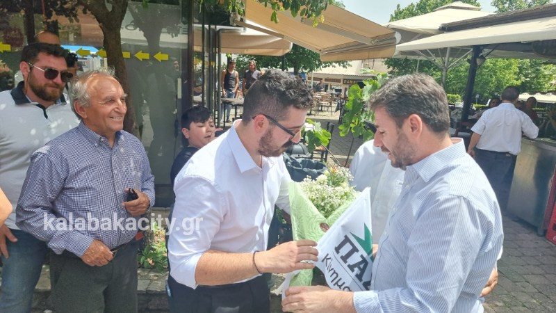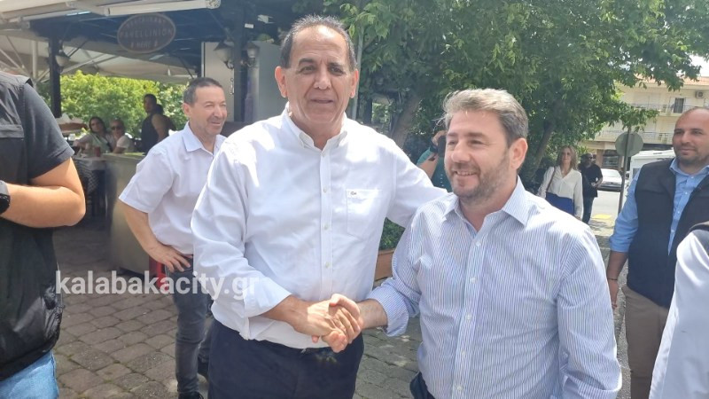 Θερμή υποδοχή επεφύλαξαν στον προεδρο του ΠΑΣΟΚ κ. Νίκο Ανδρουλάκη σήμερα το μεσημέρι στην Καλαμπάκα, μέλη και φίλοι του κόμματος.