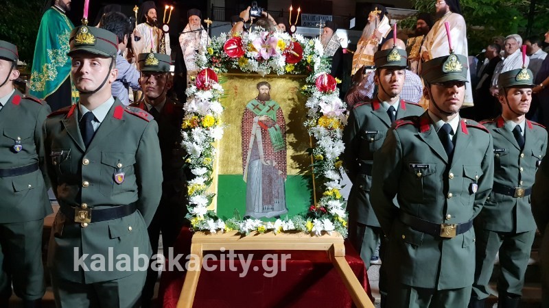 Συνεχίστηκαν σήμερα οι εκδηλώσεις εορτασμού του Αγίου Βησσαρίωνος στην Καλαμπάκα, με τον Μέγα Εσπερινό και την λιτάνευση της Ιεράς εικόνας και της Τιμίας Κάρας του Αγίου.
