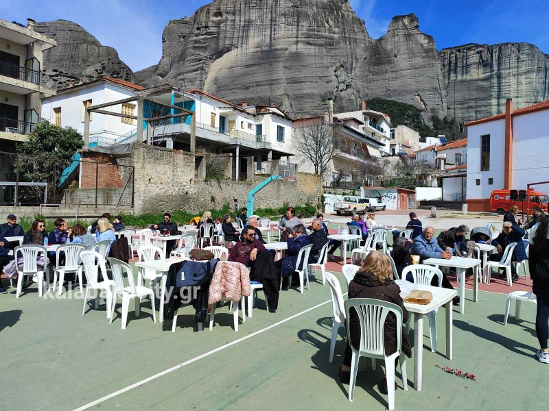 Πλήθος κόσμου βρέθηκε στον χώρο για την παραδοσιακή φασολάδα και τα νηστίσιμα που προσφέρθηκαν σε όλους από τον Δήμο Μετεώρων.