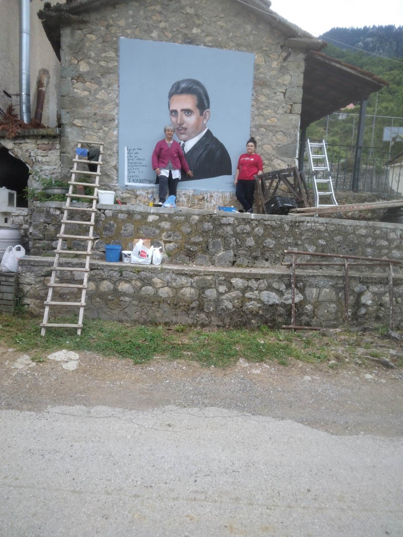 Καλαμπάκα: Τοιχογραφία του μουσικοσυνθέτη Χρ. Κολοκοτρώνη στη Γλυκομηλιά ζωντανεύει την ιστορία του τόπου