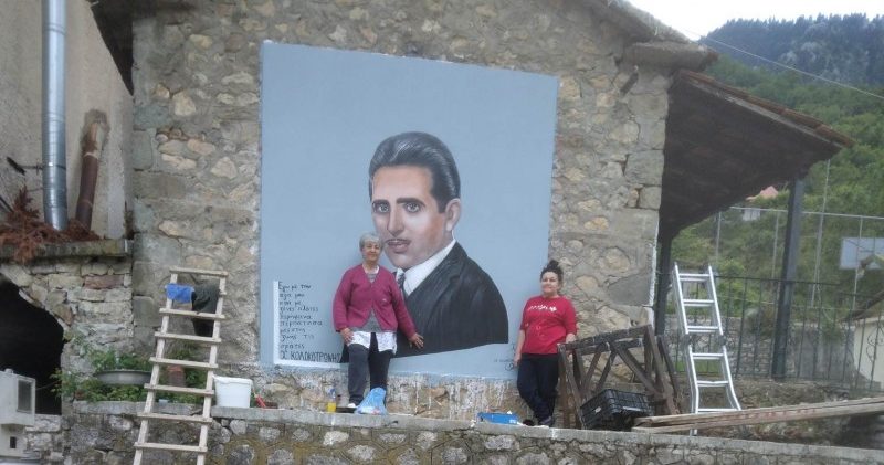 Καλαμπάκα: Τοιχογραφία του μουσικοσυνθέτη Χρ. Κολοκοτρώνη στη Γλυκομηλιά ζωντανεύει την ιστορία του τόπου