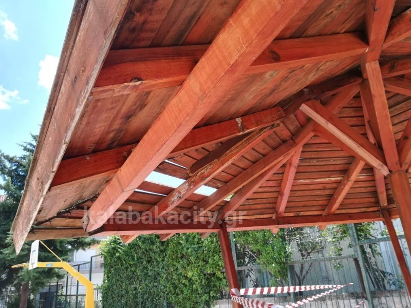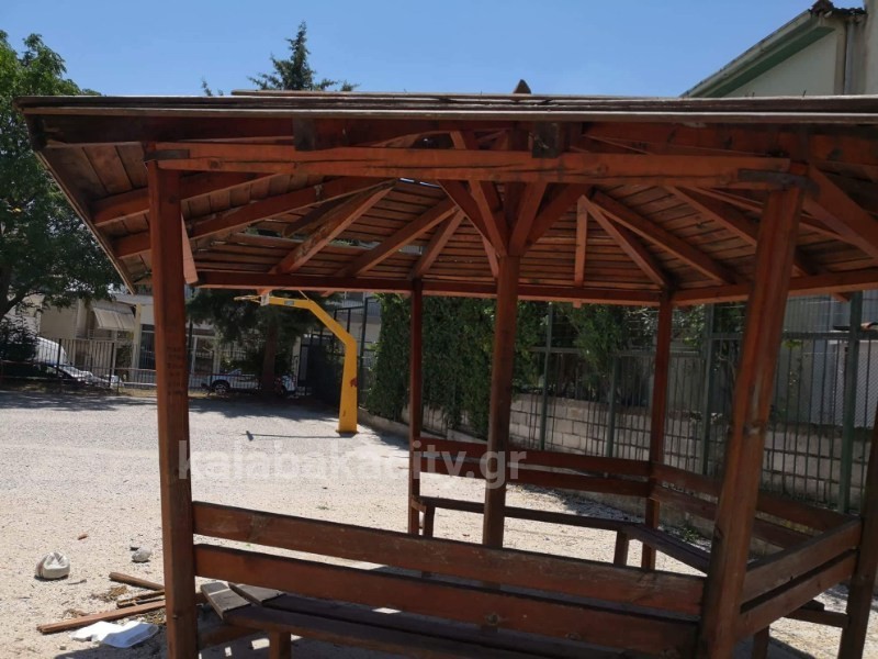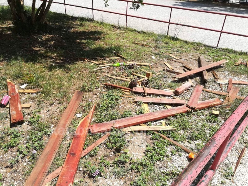 Άγνωστοι αφαίρεσαν ξύλα και στηρίγματα από το κιόσκι, έσπασαν τα παγκάκια για άγνωστο λόγο και η όλη κατασκευή είναι ιδιαίτερα επικίνδυνη πλέον για όλα τα παιδιά που παίζουν στην αυλή του σχολείου.