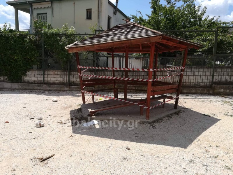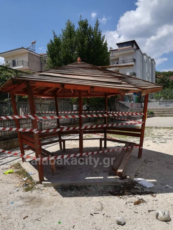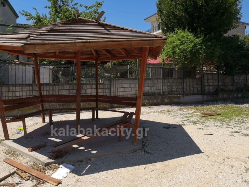 Στο κιόσκι που βρίσκεται στην αυλή του 4ου Δημοτικού Σχολείου Καλαμπάκας ξέσπασαν κάποιοι τις βραδινές ώρες της Παρασκευής.