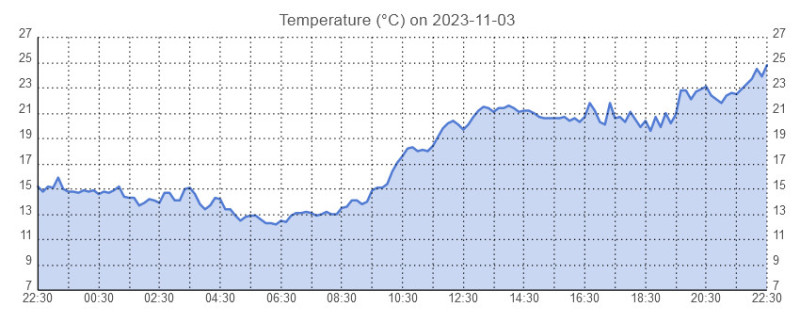 Η θερμοκρασία που κατά τη διάρκεια της ημέρας έφτασε τους 21 περίπου βαθμούς Κελσίου, απόψε στις 22:30 σύμφωνα με τον μετεωρολογικό σταθμό του meteo στην πόλη μας έφτασε στους 24,8 βαθμούς Κελσίου με δυνατό άνεμο και πολύ σκόνη που είναι αισθητή στην ατμόσφαιρα!