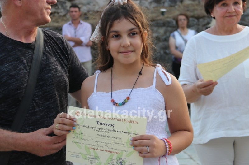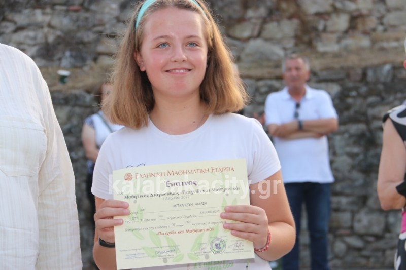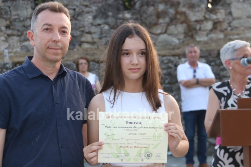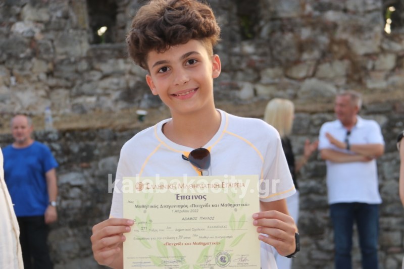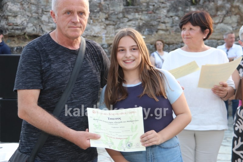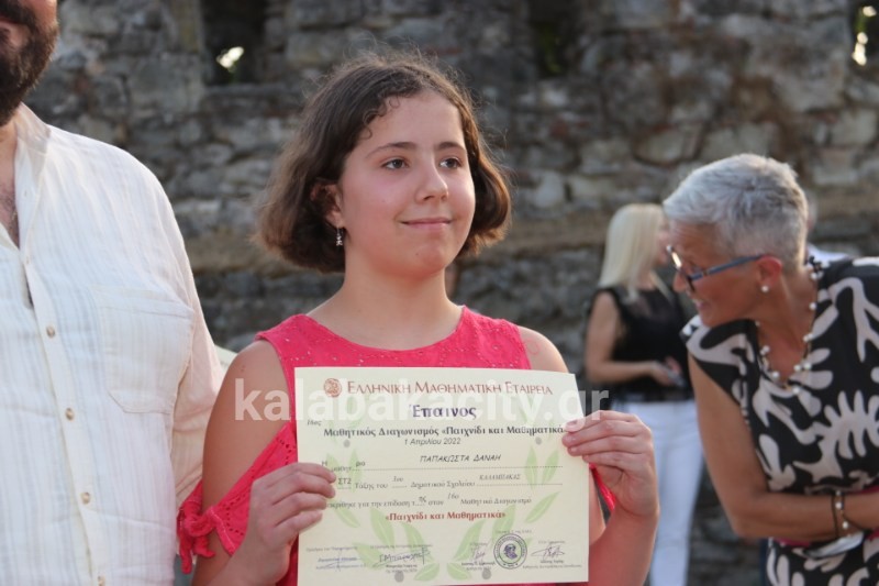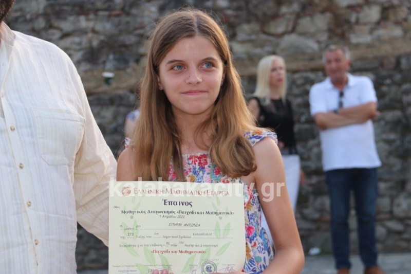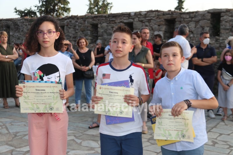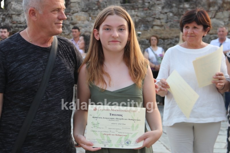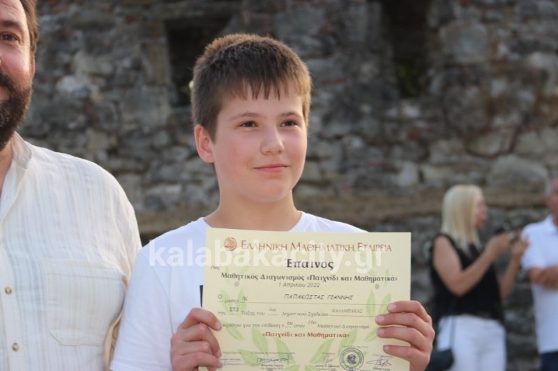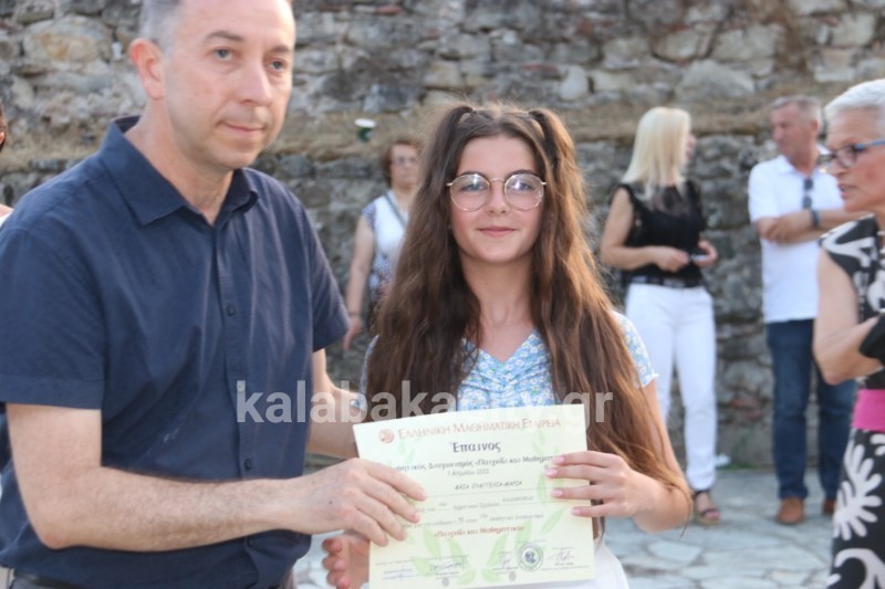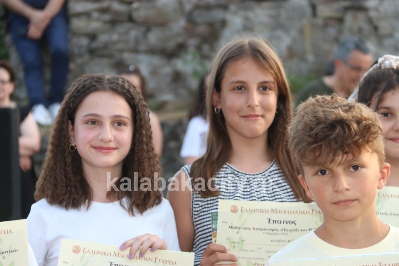 Στο Ανοιχτό Θέατρο του Βυζαντινού Φρουρίου της πόλης των Τρικάλων έγινε σήμερα η βράβευση των μαθητών/τριών των σχολείων του Νομού Τρικάλων οι οποίοι διακρίθηκαν στους παρακάτω Μαθηματικούς Διαγωνισμούς που διεξήχθησαν κατά το τρέχον σχολικό έτος 2021-2022: