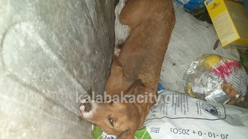 Νεκρό σε κάδο απορριμάτων βρέθηκε απόψε, σκυλί στην πόλη μας, στην περιοχή πίσω από τον Ιερό Ναό Οσίων Μετεωριτών Πατέρων Καλαμπάκας.