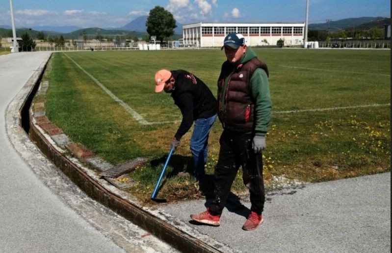 Εξαιτίας της εξέλιξης αυτής, εφιστούμε την προσοχή στους συμπολίτες μας και ζητούμε την κατανόηση τους στην αποφυγή χρήσης του εν λόγω γηπέδου μέχρι και την ολοκλήρωση του έργου, και συγκεκριμένα στον αγωνιστικό χώρο του γηπέδου και τον χώρου του στίβου, όπου πραγματοποιούνται οι εργασίες για την κατασκευή του ταρτάν .