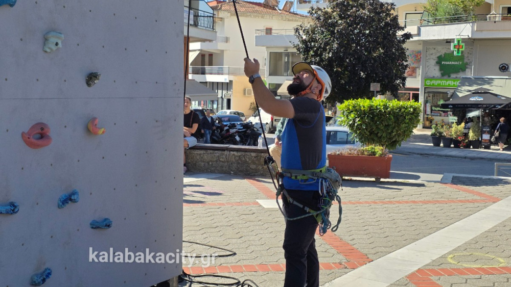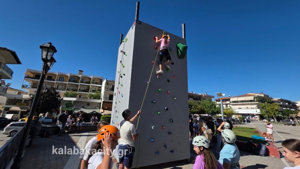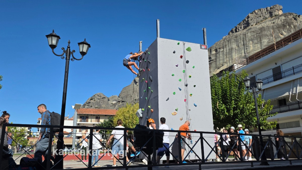 Ξεκίνησε στην Καλαμπάκα σήμερα – βάση του προγράμματος – η 36η Πανελλήνιος Αναρριχητική Συνάντηση με αναρρίχηση για παιδιά σχολείων Καλαμπάκας στην ειδική πίστα που υπάρχει στην πλατεία Ρηγα Φεραίου.