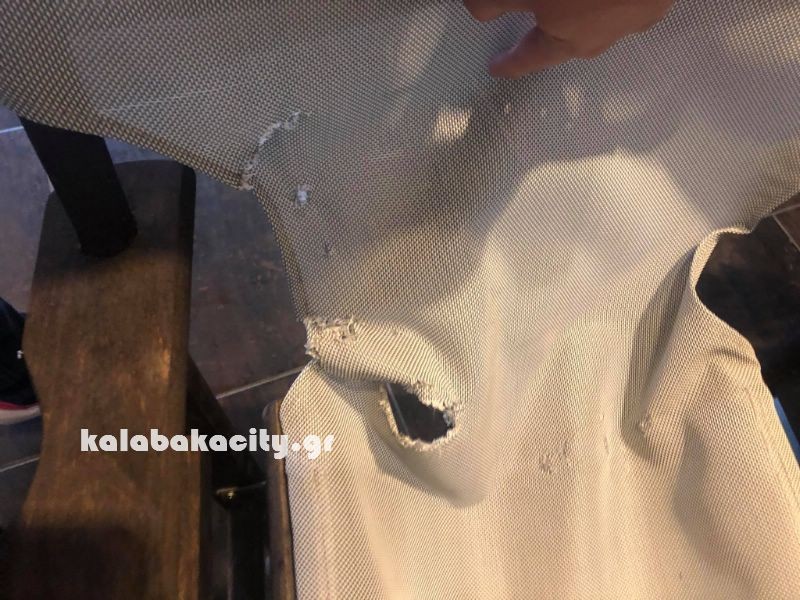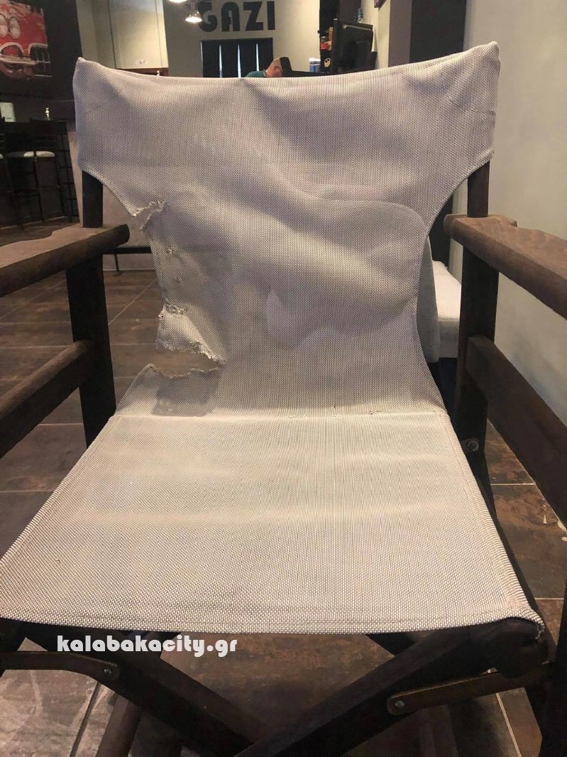 Ο ιδιοκτήτης αντίκρισε οκτώ από τις καρέκλες που είχε εξωτερικά του καταστήματός του να έχουν υποστεί ζημιές από αδέσποτα σκυλιά, όπως θα δείτε και στις φωτογραφίες που ακολουθούν.