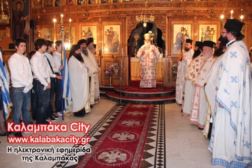 Παρόλα αυτά στον Ιερό Μητροπολιτικό Ναό του Αγίου Βησσαρίωνος, η Δημοτική Αρχή, εκπρόσωποι της Αστυνομίας και της Πυροσβεστικής, μαθητές όλων των βαθμίδων και εκπαιδευτικοί έδωσαν το παρόν στην θεία δοξολογία χοροστατούντος του Σεβασμιοτάτου Μητροπολίτη Σταγών και Μετεώρων κ.κ Σεραφείμ.