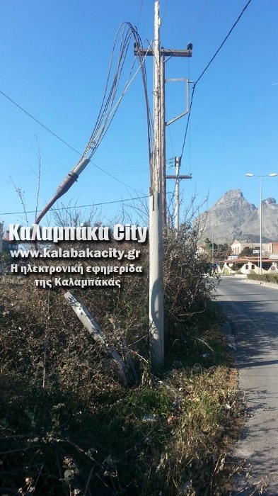 Ευτυχώς δεν συνέβησαν τα χειρότερα… από την τσιμεντένια κολόνα φωτισμού στην έξοδο της Καλαμπάκας η οποία δεν άντεξε στον αέρα που φύσηξε αυτές τις μέρες.