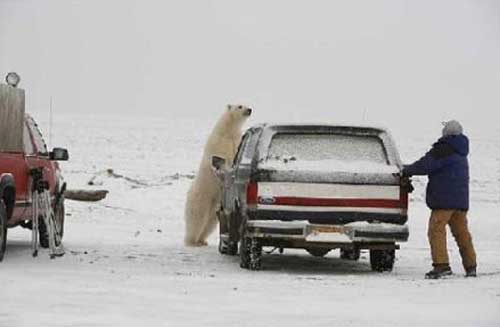 Αρκούδα έκανε την εμφάνισή της μέρα μεσημέρι – σύμφωνα με μαρτυρία κατοίκου της περιοχής – στον κόμβο και στεκόταν στα δυο της πόδια… κατατρομάζοντας τους οδηγούς που περνούσαν από το σημείο.