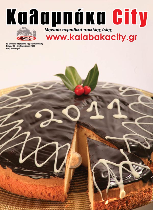 Κυκλοφόρησε σήμερα το πρωί στα περίπτερα της Καλαμπάκας το μηνιαίο περιοδικό της ιστοσελίδα μας Καλαμπάκα City no 33. Το περιοδικό μας στις σελίδες του περιλαμβάνει σχεδόν όλες τις εκδηλώσεις που έγιναν στην Καλαμπάκα και περιοχή από τα τέλη του περασμένου Δεκέμβρη έως και τις 23 Ιανουαρίου. Βραδιές Πολιτιστικών συλλόγων, κοπές πίτας, μουσικές βραδιές, άρθρα συνεργατών, σχολιασμοί, αθλητική ενημέρωση και άλλα πολλά θα μπορέσετε να δείτε και να διαβάσετε στις 48 έγχρωμες σελίδες του.