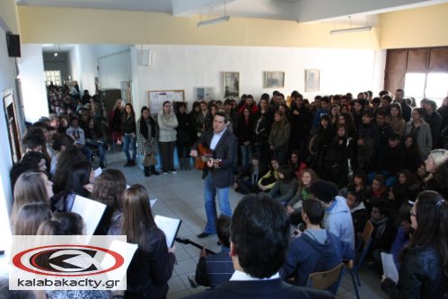 Μια όμορφη εκδήλωση πραγματοποίησε το Γενικό Λύκειο Καλαμπάκας στον χώρο του με ομιλίες, ποιήματα και τραγούδια από μια μικρή μπάντα που έφτιαξαν μαθητές του σχολείου με τις κιθάρες τους.