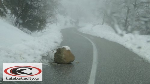 Από το πολύ χιόνι και και την βροχή που έπεσε τις προηγούμενες ημέρες, αποκολλήθηκε από το πρανές του δρόμου μια αρκετά μεγάλη πέτρα η οποία κύλησε σχεδόν στο κέντρο του δρόμου των Μετεώρων, που ευτυχώς δεν περνούσε από το σημείο όχημα για να προκαλέσει κάποιο ατύχημα.