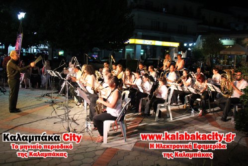 Στην πλατεία Ρήγα Φεραίου και στα πλαίσια των εκδηλώσεων του “Μετέωρα Τέχνης 2012” εμφανίστηκε στην Καλαμπάκα μια από τις καλύτερες Φιλαρμονικές μπάντες της Ελλάδος την Τετάρτη το βράδυ.