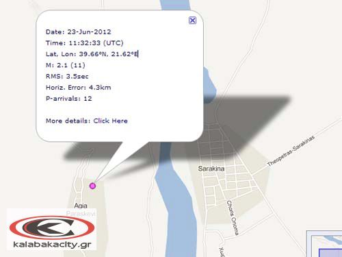Μικρής έντασης σεισμική δόνηση σημειώθηκε σήμερα στις 11:32 το πρωί κοντά στον οικισμό Αγίας Παρασκευής τους Δήμου Καλαμπάκας.
