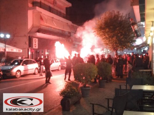 Κάποια συνθήματα και από τις δυο πλευρές ήταν αρκετά για να ανάψουν τα αίματα αλλά πριν γίνει οτιδήποτε… μεγάλη αστυνομική δύναμη του Α.Τ Καλαμπάκας απέτρεψε το οποιοδήποτε άσχημο επεισόδιο…