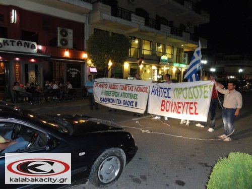 Στον δρόμο βγήκαν το βράδυ της Κυριακής “Οι αγανακτισμένοι Καλαμπακιώτες” συμμετέχοντας στον αγώνα που ξεκίνησε πριν ημέρες σε διάφορες πόλεις της Ελλάδας με τους αγανακτισμένους πολίτες. Ομάδα νέων ανθρώπων φώναξαν διάφορα συνθήματα για τα όσα συμβαίνουν στον τόπο μας κρατώντας πανό που περνούσαν τα δικά τους μηνύματα.