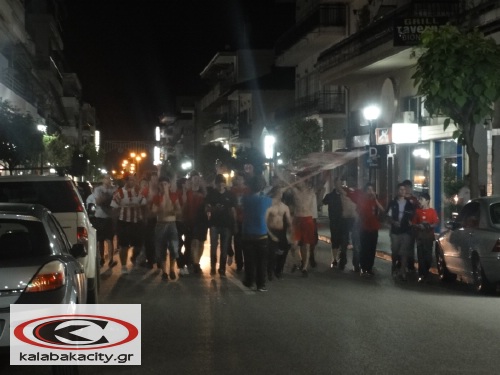 Οι Καλαμπακιώτες φίλαθλοι ξεχύθηκαν στους δρόμους φωνάζοντας συνθήματα υπέρ της αγαπημένης τους ομάδας κάνοντας πορεία στην κεντρική οδό της πόλης.