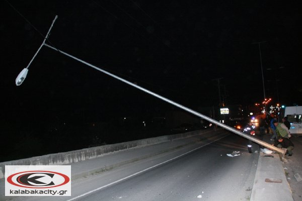 Για αρκετή ώρα έμεινε κλειστό το ένα ρεύμα της εισόδου της Καλαμπάκας, όταν διερχόμενο Ι.Χ αυτοκίνητο έπεσε σε κολόνα φωτισμού και την έριξε επάνω σε ηλεκτροφόρα καλώδια της ΔΕΗ.
