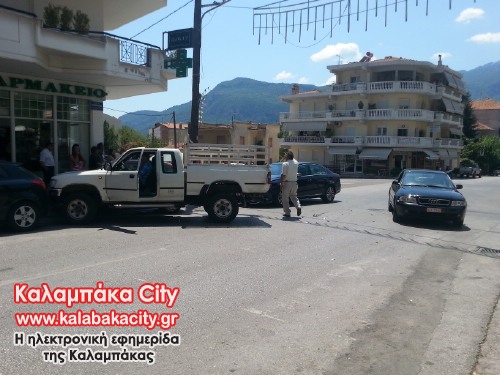 Σύγκρουση ευτυχώς με υλικές μόνο ζημιές είχαμε σήμερα στην Καλαμπάκα και συγκεκριμένα στην διασταύρωση των οδών Ιωαννίνων και Μετεώρων.