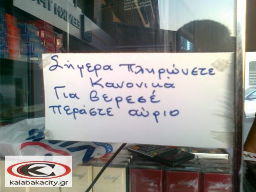 Έτσι αρκετοί καταστηματάρχες προειδοποιούν πριν ακόμα ζητηθεί ο “βερεσές” με ανάλογο μήνυμα κολλημένο στην τζαμαρία ή σε εμφανές σημείο εσωτερικά του μαγαζιού.