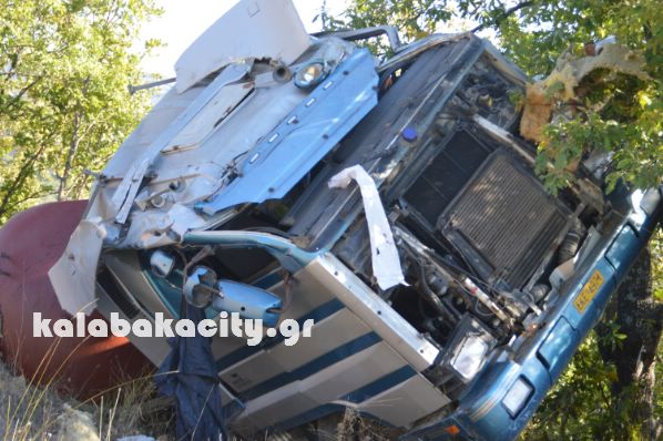 Το ατύχημα έλαβε χώρα στην ε.ο. Τρικάλων – Ιωαννίνων λίγο πριν την Μεγάλη Κερασιά Καλαμπάκας, όταν το βαρύ όχημα που μετέφερε ξύδι εκτράπηκε της πορείας του και ανετράπη, με αποτέλεσμα να υποστεί σχεδόν ολοκληρωτική ζημιά αλλα ο οδηγός δεν έπαθε τίποτα, παρά μόνο σοκ… από τις δύσκολες στιγμές που έζησε από το όχημα που σταμάτησε στον γκρεμό.