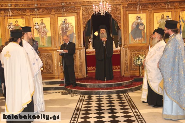 Μετά το πέρας της Δοξολογίας, εκφωνήθηκε ο Πανηγυρικός της ημέρας, με ομιλητή τον Δ/ντη του 1ου Δημοτικού Σχολείου Καλαμπάκας κ. Δημοσθένη κομπογιάννη.