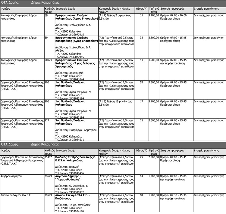 Καλαμπάκα: Οι προσωρινοί πίνακες επιλέξιμων δομών