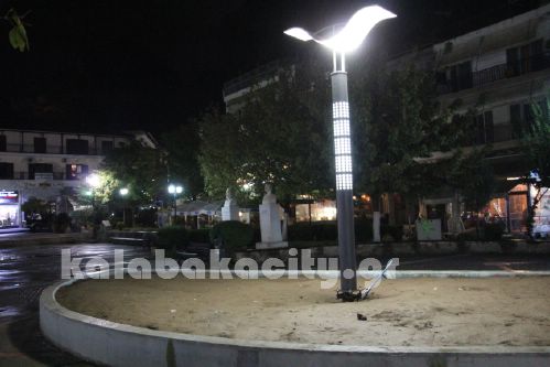 Τώρα αν “δένει” με την πλατεία της Καλαμπάκας και τις προτομές των ηρώων μας που βρίσκονται δίπλα, αυτό είναι άλλο θέμα και ανάλογα με τα γούστα του καθενός, όπως και εκείνου που επέλεξε το συγκεκριμένο φωτιστικό…