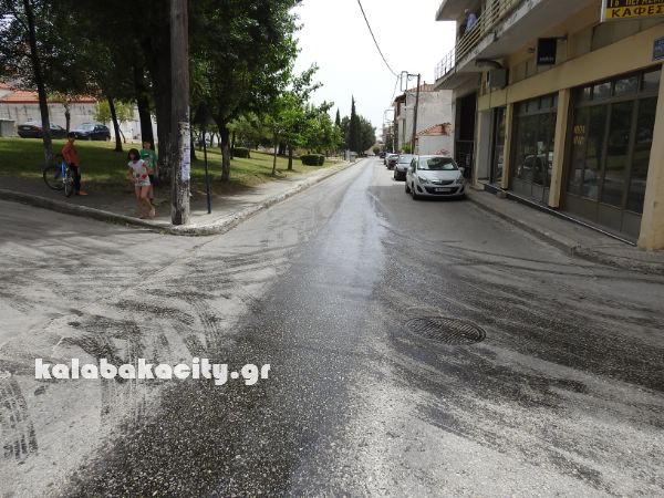 Η οδός Ευαγγέλου από το ύψος του 3ου Δ.ΣΧ. Καλαμπάκας έως και το Γενικό Λύκειο από τα λάδια που πέσανε έχει ιδιαίτερο κίνδυνο για διερχόμενους οδηγούς και πεζούς, καθώς πολύ εύκολα μπορεί να προκληθεί ατύχημα.