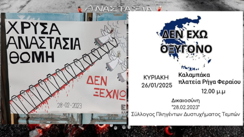 O ΣYΛΛOΓOΣ ΓONEΩN KAI KHΔEMONΩN TOY ΔHMOTIKOY ΣXOΛEIOY, O EΞΩPAIΣTIKOΣ MOPΦΩTIKOΣ OMIΛOΣ, O AΘΛHTIKOΣ OMIΛOΣ “BPAXOΣ” KAI TO TOΠIKO ΣYMBOYΛIO THΣ KOINOTHTAΣ KAΣTPAKIOY KAΛOYN TA MEΛH TOYΣ KAI OΛOYΣ TOYΣ KAΣTPAKINOYΣ THN KYPIAKH 26/01 KAI ΩPA 12:00 ΣTHN ΠΛATEIA PHΓA ΦEPAIOY ΣTHN KAΛAMΠAKA ΣTH ΣYΓKENTPΩΣH “ΔEN EXΩ OΞYΓONO” TOY ΣYΛΛOΓOY ΠΛHΓENTΩN ΔYΣTYXHMATOΣ TEMΠΩN ΓIA NA ΔHΛΩΣOYME THN ΣTHPIΞH MAΣ ΣTIΣ OIKOΓENEIEΣ THΣ ΠEPIOXHΣ MAΣ KAI OΛHΣ THΣ EΛΛAΔAΣ ΣTON ΔIKAIO AΓΩNA TOYΣ ΓIA ΔIKAIOΣYNH.