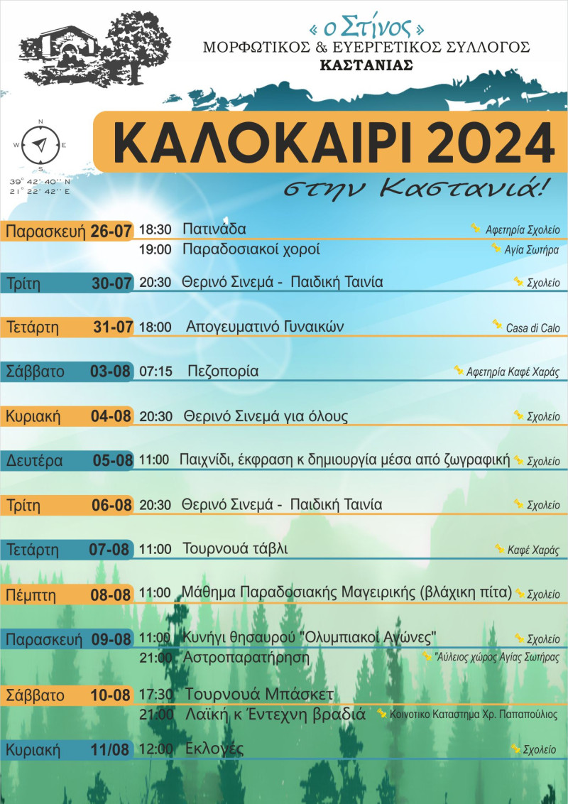 Καλοκαίρι στην Καστανιά – Το πρόγραμμα εκδηλώσεων του Πολιτιστικού Συλλόγου