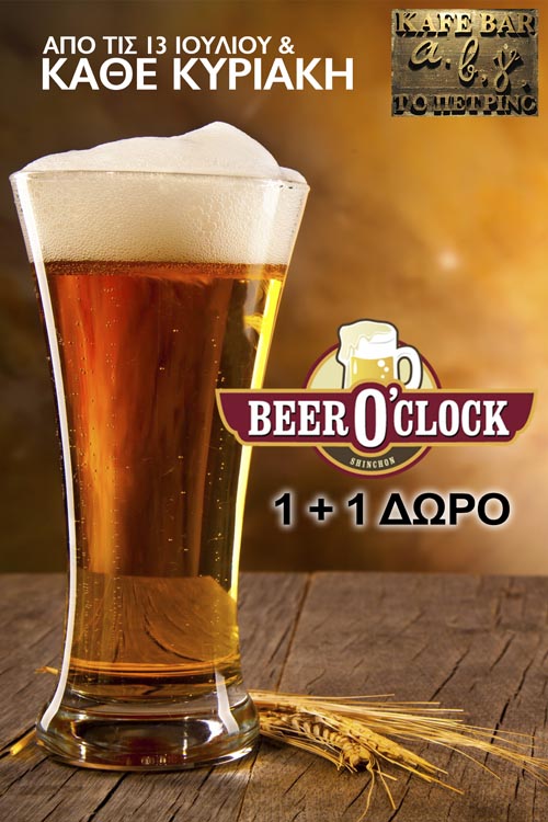 Επίσης κάθε Κυριακή στο ΑΒΓ “Το Πέτρινο” πίνοντας μια βαρελίσια μπύρα δώρο μια ακόμη ( 1+1 )!!!