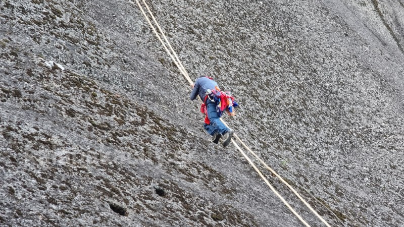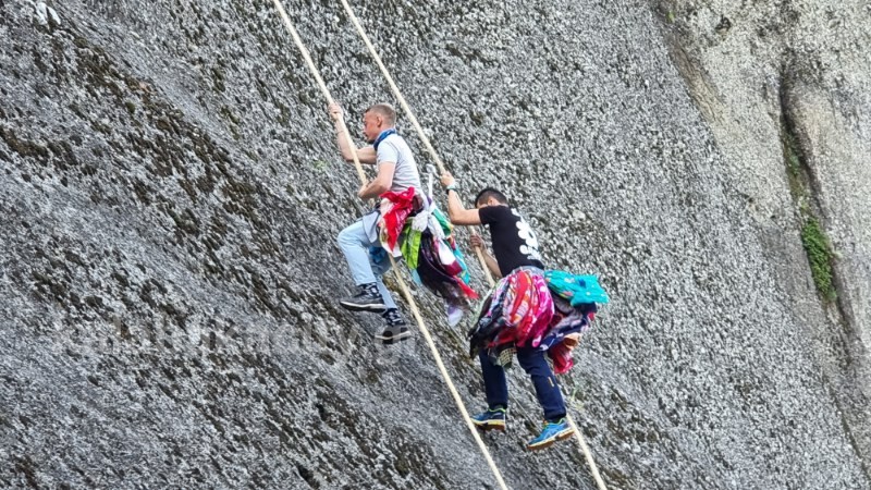 Η διαδικασία ξεκινά από νωρίς το πρωί με τους πιο έμπειρους αναρριχητές να ανεβαίνουν πρώτοι στον βράχο και ειδικότερα στο ερειπωμένο μοναστήρι του Αγίου Γεωργίου και στην συνέχεια να ρίχνουν τα σκοινιά με τα οποία ανεβαίνουν οι υπόλοιποι αναρριχητές για την διαδικασία του ανεβοκατεβάσματος των μαντηλίων.