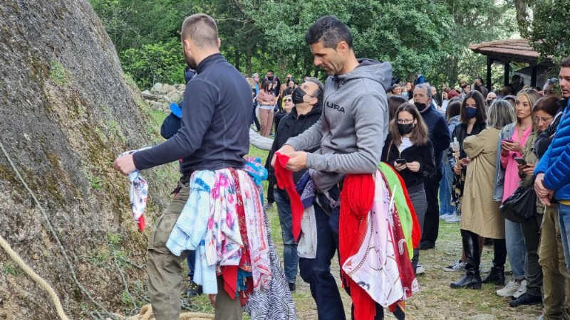 Από νωρίς το πρωί ξεκίνησε σήμερα του Αγίου Γεωργίου το ανέβασμα των μαντηλιών στο ερειπωμένο μοναστήρι του Αγίου Γεωργίου του “Μαντηλά” στο Καστράκι Καλαμπάκας.