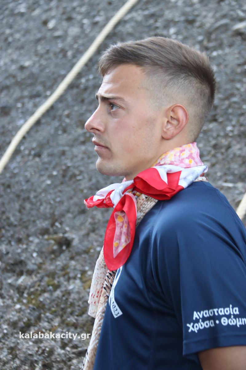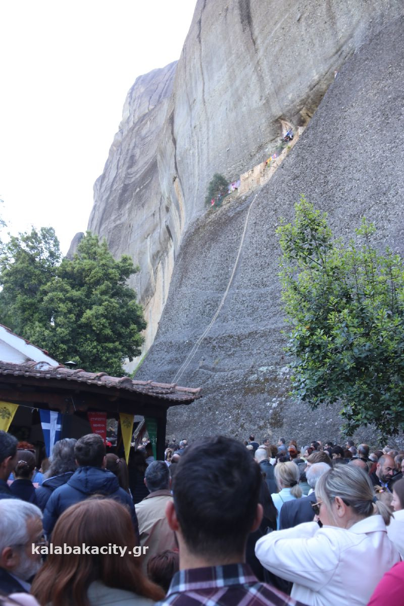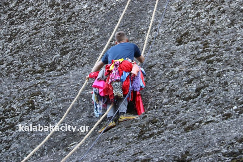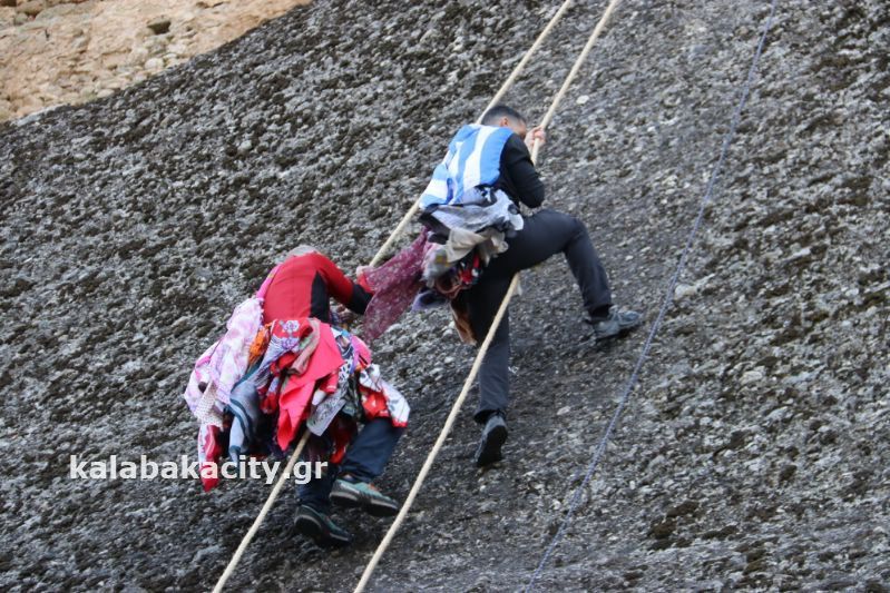 Η διαδικασία ξεκίνησε από νωρίς το πρωί με τους πιο έμπειρους αναρριχητές να ανεβαίνουν πρώτοι στον βράχο και ειδικότερα στο ερειπωμένο μοναστήρι του Αγίου Γεωργίου και στην συνέχεια να ρίχνουν τα σκοινιά με τα οποία ανεβαίνουν οι υπόλοιποι αναρριχητές για την διαδικασία του ανεβοκατεβάσματος των μαντηλίων.