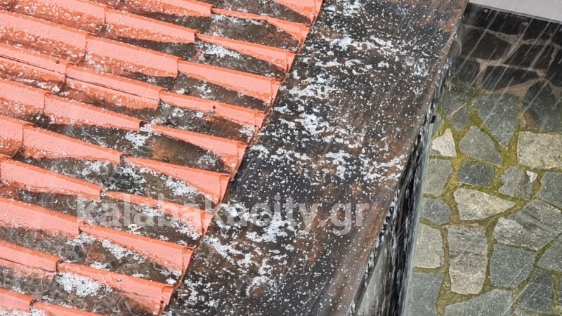 Σφοδρή καταιγίδα πλήττει αυτή τη στιγμή την Καλαμπάκα και την περιοχή, συνοδευόμενη από χαλαζόπτωση.