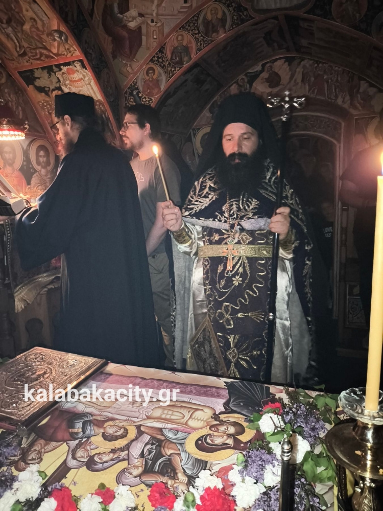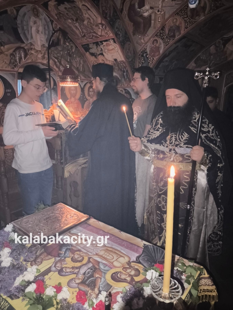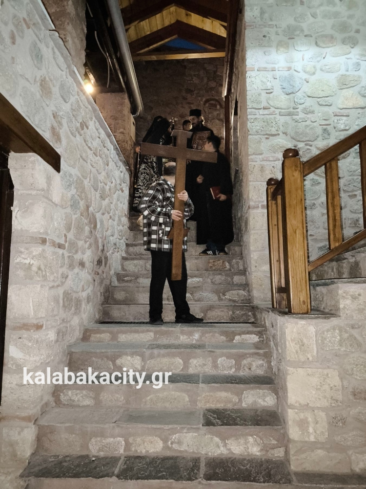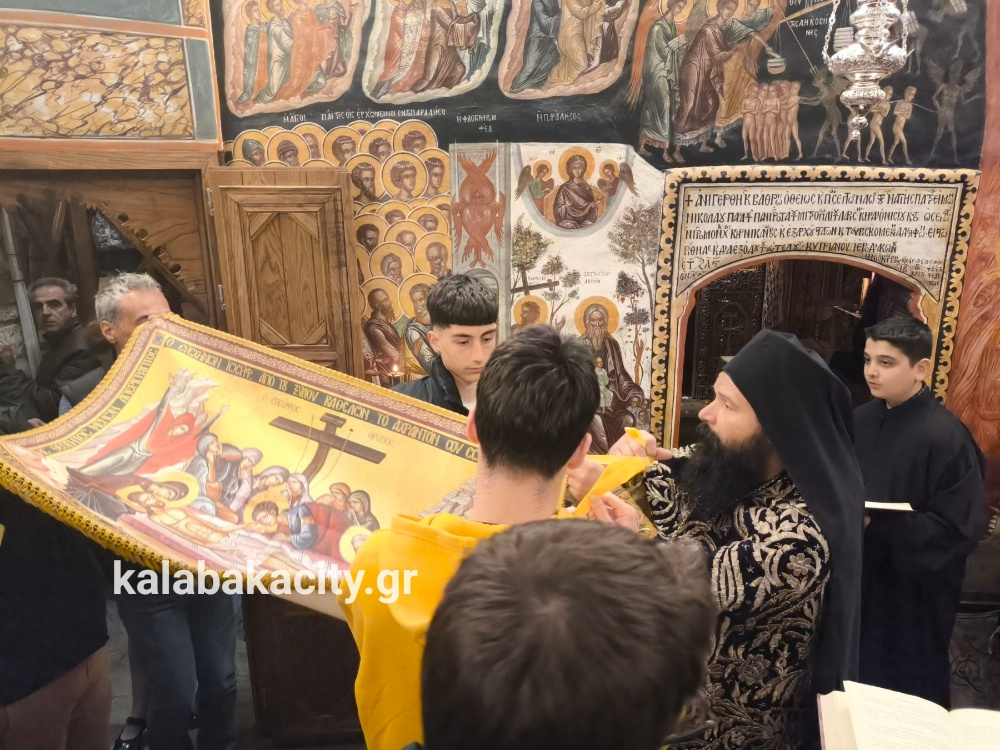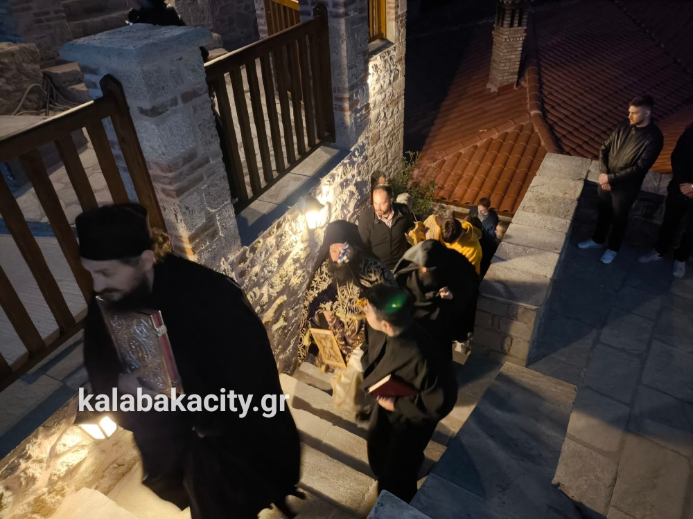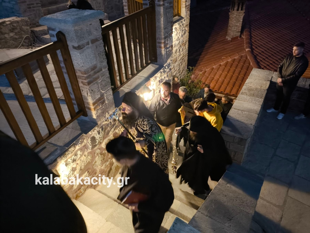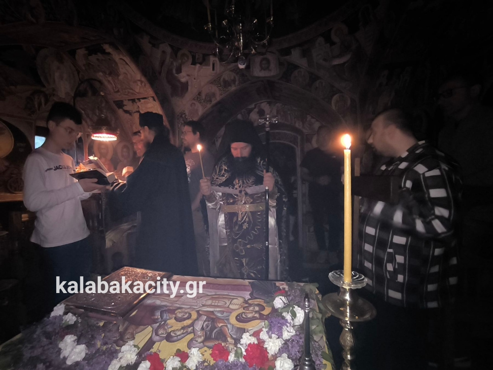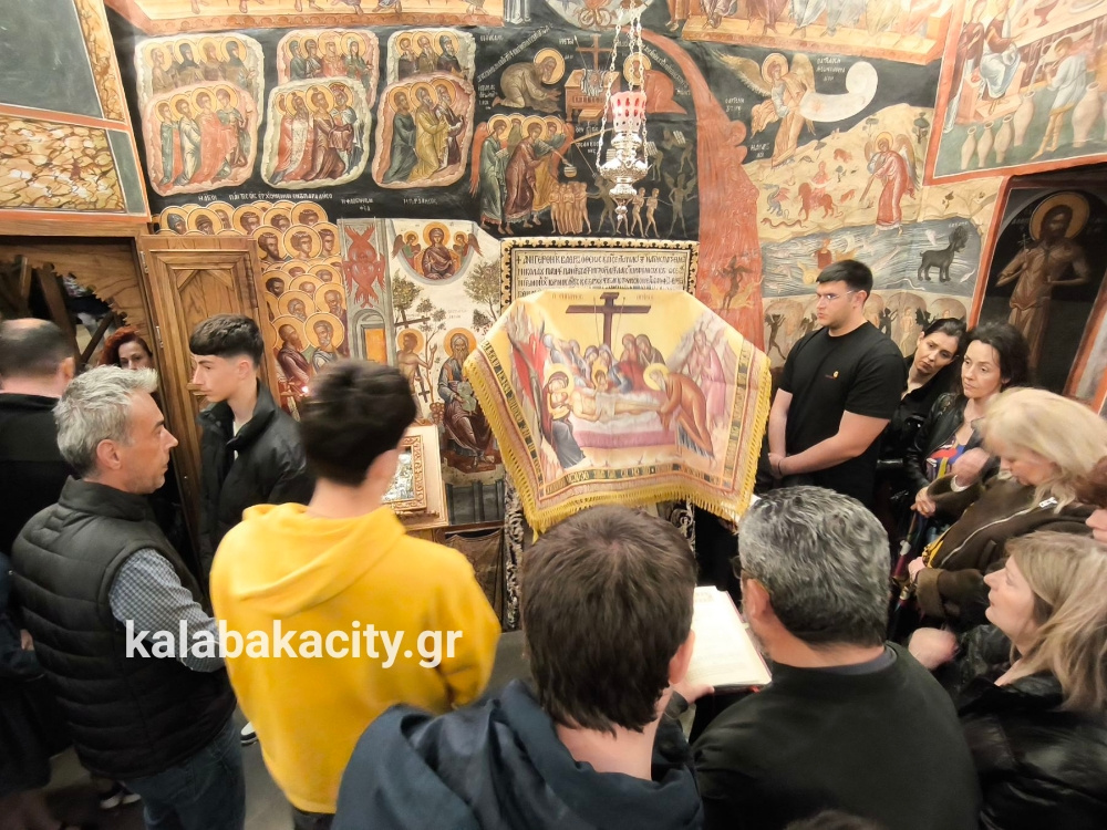 Με ιδιαίτερη κατάνυξη τελέστηκε η Ακολουθία του Επιταφίου στη Μονή Αγίου Νικολάου Αναπαυσά στα Μετέωρα, τη Μεγάλη Παρασκευή.
