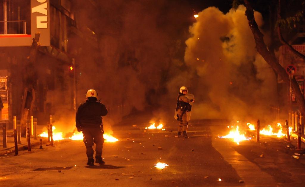 Ομάδα αγνώστων πετούσε μολότοφ εναντίον αστυνομικών δυνάμεων, ενώ φωτιές έκαιγαν σε δρόμους και κάδους απορριμμάτων.Οι αστυνομικοί απαντούσαν με ρίψη χημικών και χειροβομβίδων κρότου-λάμψης. Μέχρι το βράδυ είχαν συλληφθεί δύο άτομα και 10 είχαν προσαχθεί.