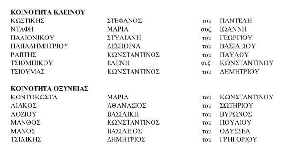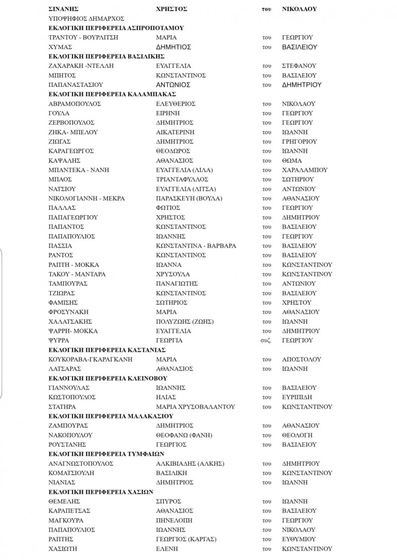 Οι υποψήφιοι Δημοτικοί Σύμβουλοι του συνδυασμού ΔΥΝΑΜΗ ΕΥΘΥΝΗΣ ανά Δημοτική Ενότητα και κατ’ αλφαβητική σειρά είναι: