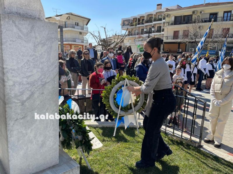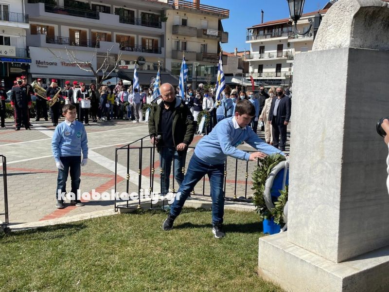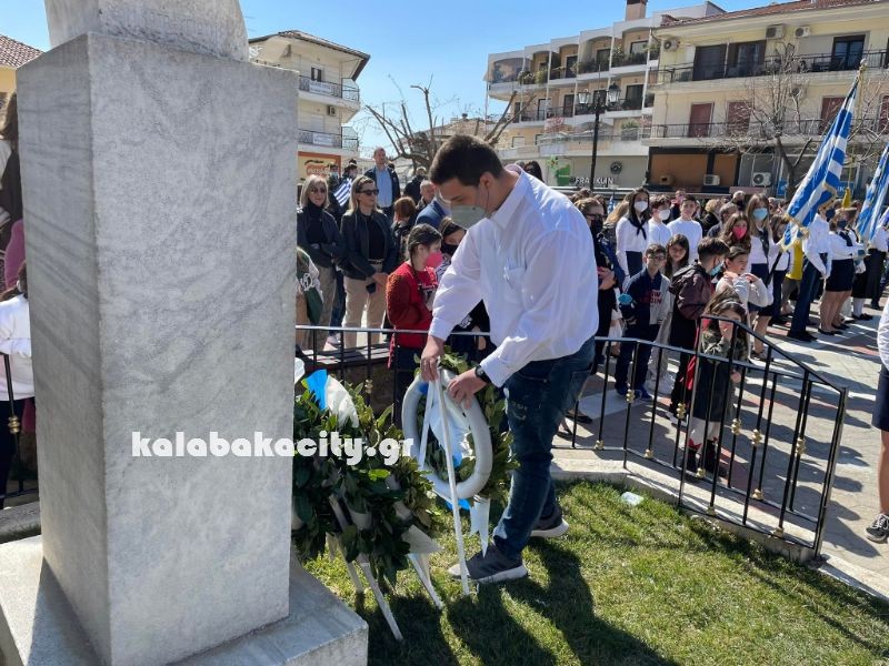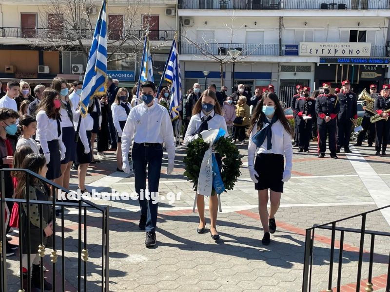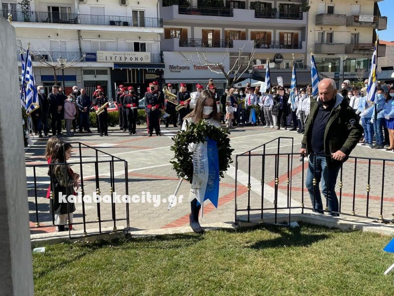 Στις 11:00 το πρωί οι μαθητές με την απαραίτητη λήψη μέτρων προχώρησαν στην κατάθεση στεφάνων στις προτομές των Παπα-Θύμιου Βλαχάβα και Χριστόδουλου Χατζηπέτρου στην πλατεία Ρήγα Φεραίου.