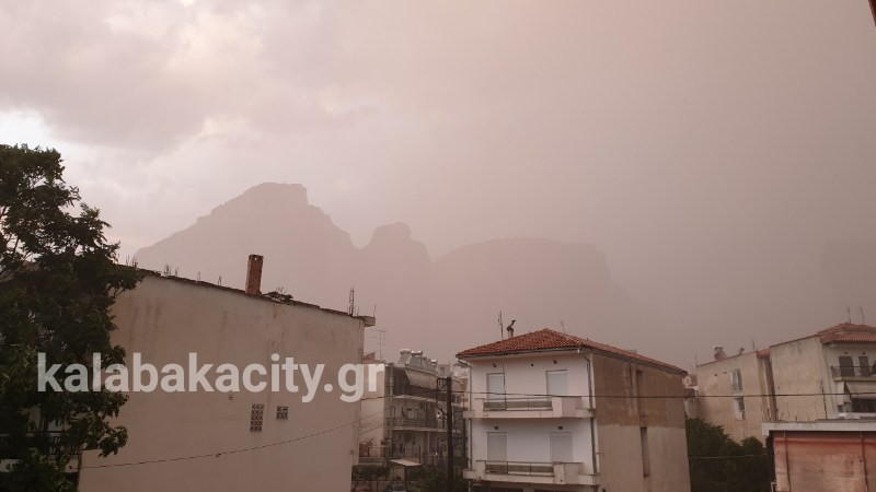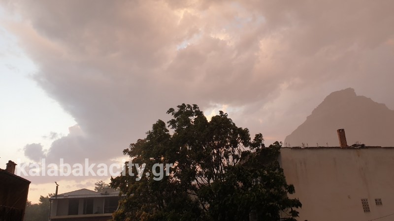 Καταιγίδα με δυνατή βροχή και αέρα πέρασε από την Καλαμπάκα σήμερα αργά το απόγευμα.