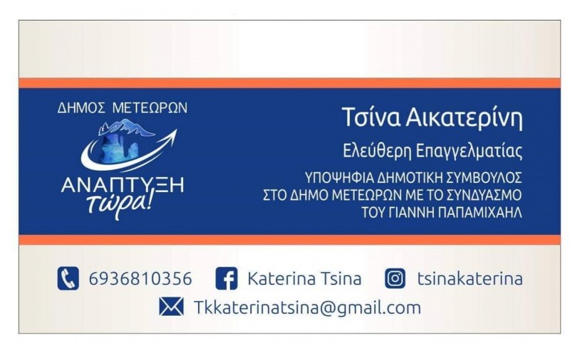 Κατερίνα Τσίνα – Υποψήφια Δημοτική Σύμβουλος στο Δήμο Μετεώρων με τον Συνδυασμό του Γιάννη Παπαμιχαήλ