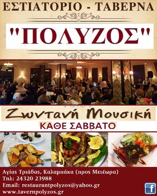 Το Εστιατόριο Polyzos κάθε Σαββατόβραδο σας εγγυάται καλό και φθηνό φαγητό, σε συνδυασμό με ζωντανή μουσική, για διασκέδαση με έντεχνο, λαϊκό, ρεμπέτικο και παραδοσιακό τραγούδι !!!